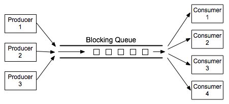 A blocking queue is an implementation of one of the classic patterns in parallel processing: the producer/consumer pattern. This pattern arises when there are one or more "producers" who produce things and one or more "consumers" who consume those things. All the producers and consumers should be able to work simultaneously (hence, parallel processing). If there are no things ready to be processed, a consumer will have to wait until one is produced. In many applications, producers also have to wait sometimes: If things can only be consumed at a rate of, say, one per minute, it doesn't make sense for the producers to produce them indefinitely at a rate of two per minute. That would just lead to an unlimited build-up of things waiting to be processed. Therefore, it's often useful to put a limit on the number of things that can be waiting for processing. When that limit is reached, producers should wait before producing more things.